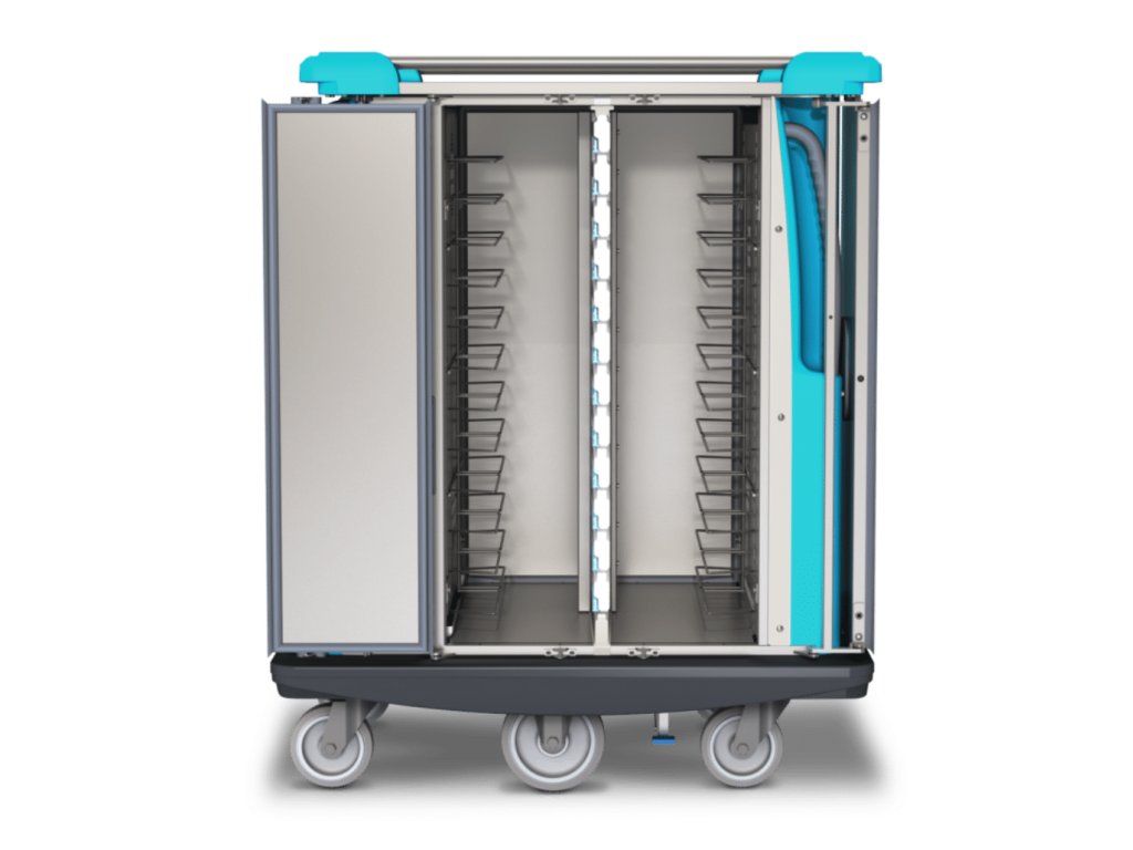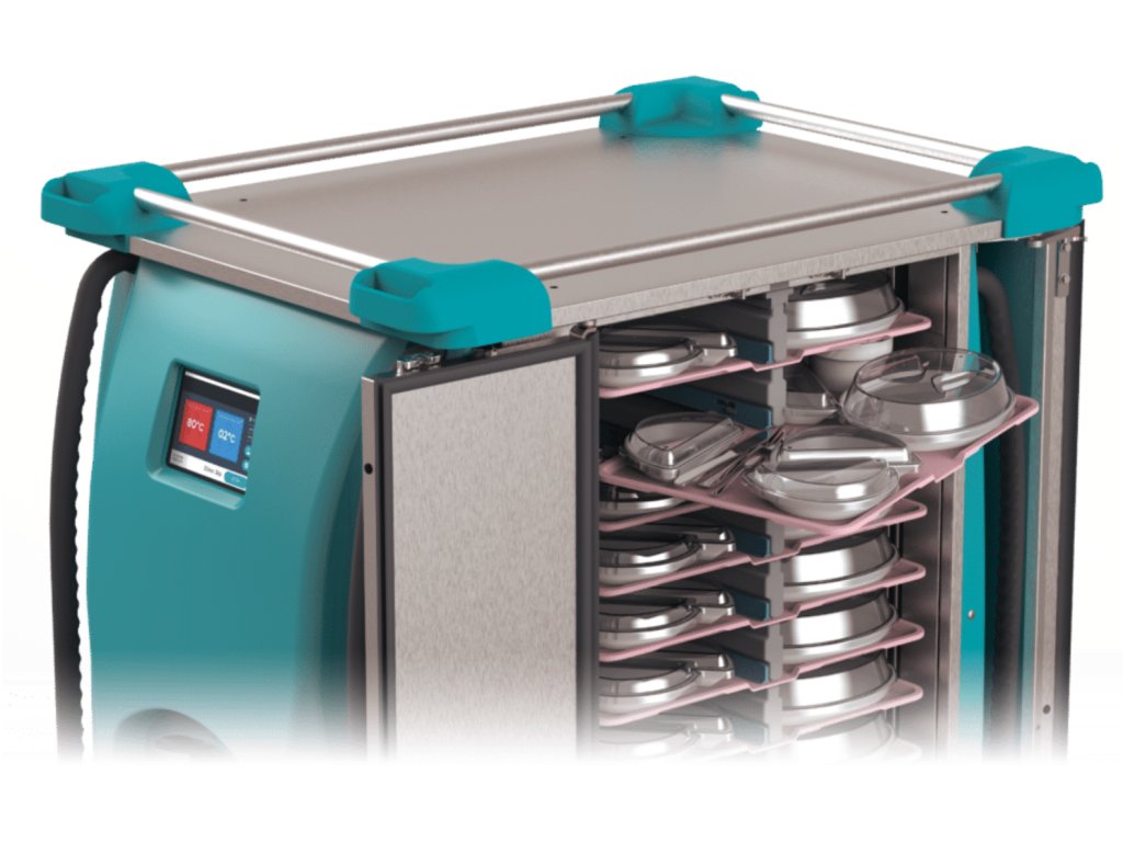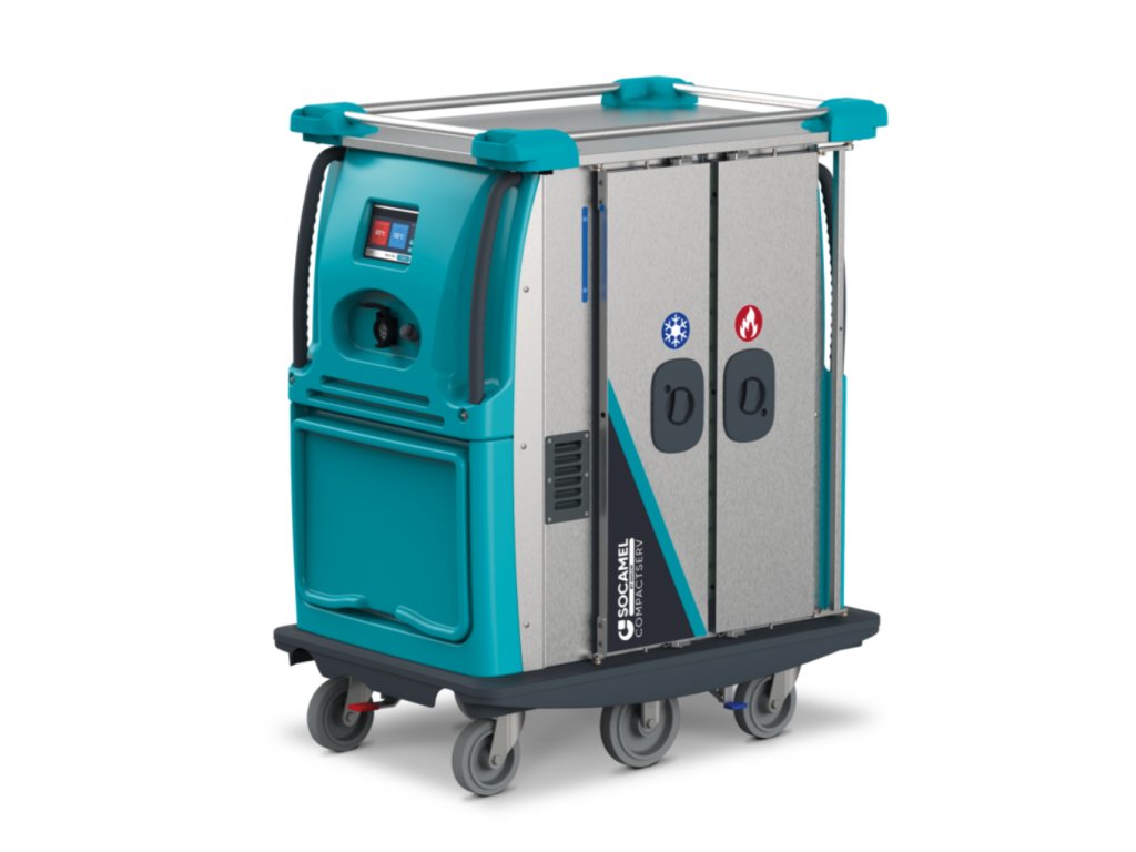 Kompaktní systém s integrovanou technologií pro výdej jídel na podnosech – vozíky CompactServ mají veškerou technologii zabudovanou přímo „na palubě“, což umožňuje jejich snadné zaparkování na oddělení a následné připojení do zásuvky pro udržení správné teploty jídel.