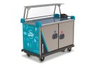 🔵 DoubleFlow ErgoServ – ideální pro provozy, kde je centrální dokovací stanice umístěna poblíž kuchyně. Porcovaná jídla se vydávají na podnosech, vozík je lehký a snadno se ovládá.